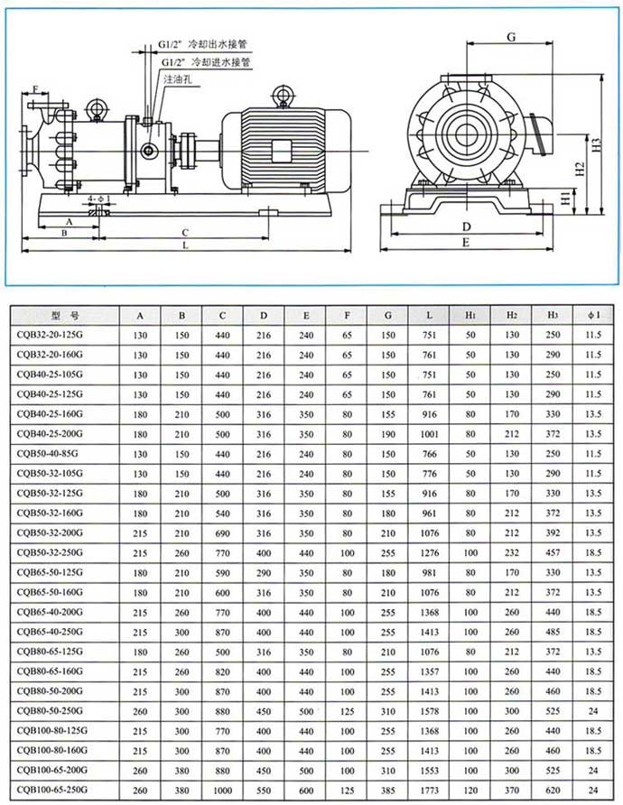 CQB-G 65-50-125 | 15 25 30 | 22 20 18.5 | 3.5 3.5 4.0 | 2900 | 2.25 2.67 2.91 | 40 51 52 | Y100L-2YB3.0