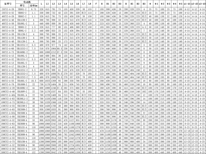 300CYZ-A-50 | 110 | 1450 | 300 | 500 | 50 | 4.5 |