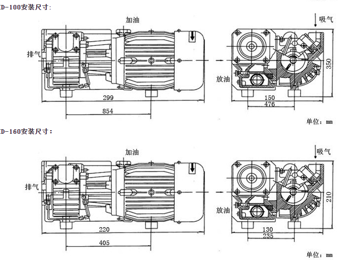 5. XD rotary vane vacuum pump and motor are directly connected and installed, using air cooling, without water cooling pipe. Therefore, this type of vacuum pump is a kind of equipment with compact structure and simple installation.